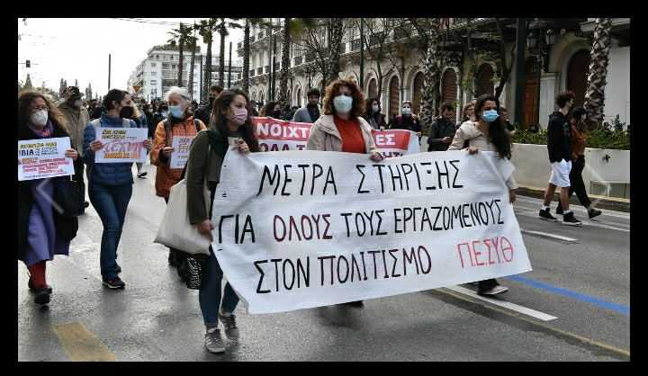 Μαζική ήταν η συμμετοχή καλλιτεχνών και εργαζόμενων στο χώρο του Θεάματος και Ακροάματος, στην Καλλιτεχνική Κινητοποίηση, που πραγματοποιήθηκε την Πέμπτη 11/2 μετά από σχετικό κάλεσμα πλήθους σωματείων από το χώρο του Πολιτισμού, με πρωτοβουλία του Πανελλήνιου Μουσικού Συλλόγου (Π.Μ.Σ), απαιτώντας την ουσιαστική ενίσχυση του καταρρακωμένου εισοδήματός τους και την απόσυρση του νέου «τρομονόμου» που επιδιώκεται να επιβληθεί στο σύνολο του οπτικοακουστικού χώρου.
