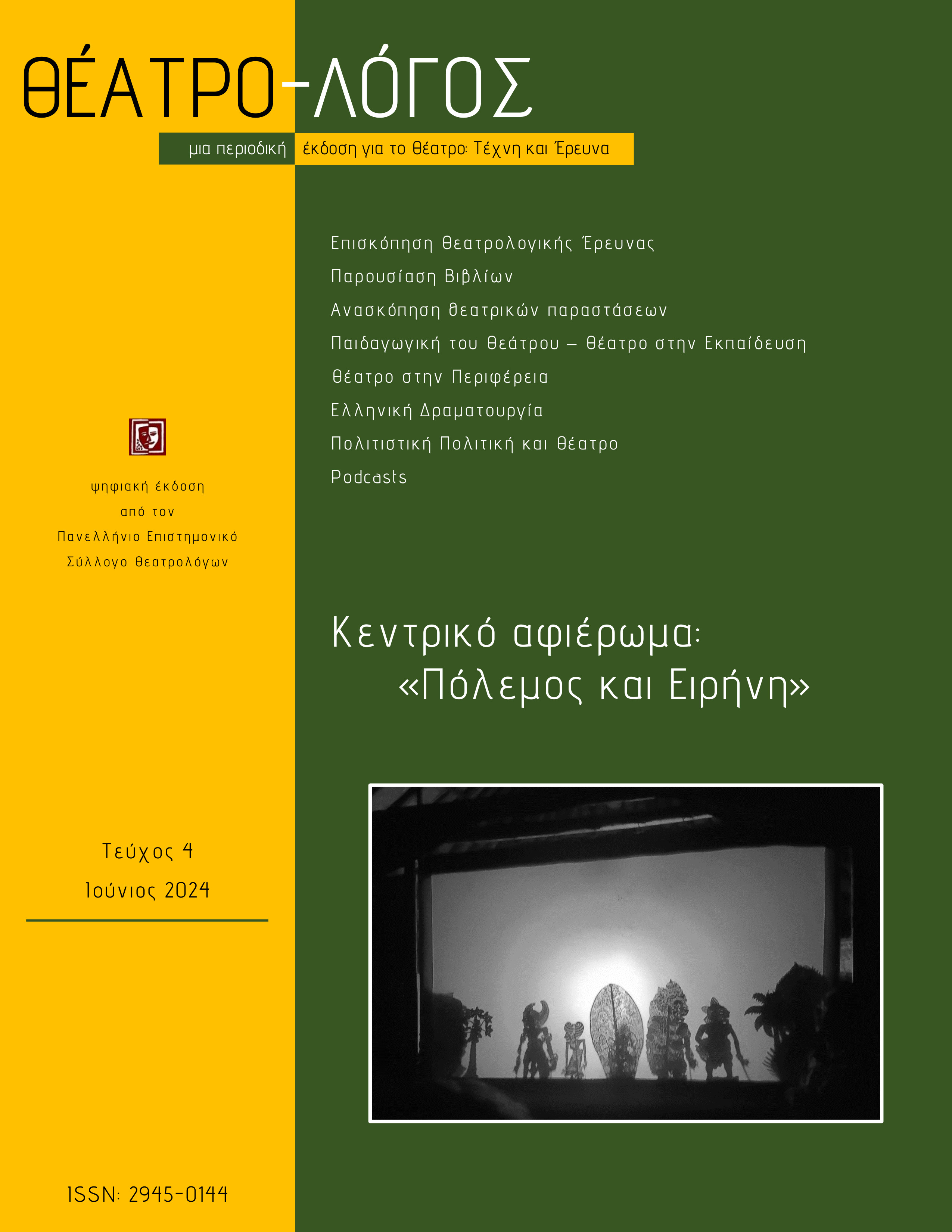 Το τέταρτο τεύχος του περιοδικού Θέατρο – Λόγος είναι γεγονός! Μπορείτε να το κατεβάσετε από τον σύνδεσμο https://pesyth.com/theatro-logos-teyxos_4/.