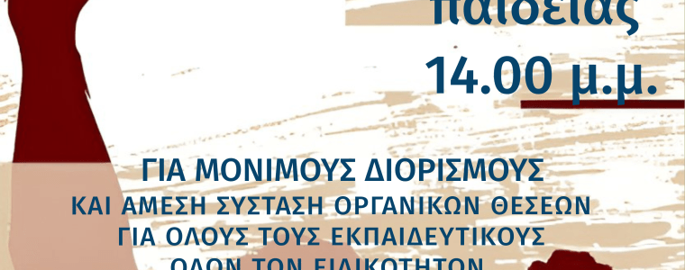 Διαβάστε περισσότερα Συμμετοχή στο Πανεκπαιδευτικό Συλλαλητήριο 11/1, 12.00, Προπύλαια